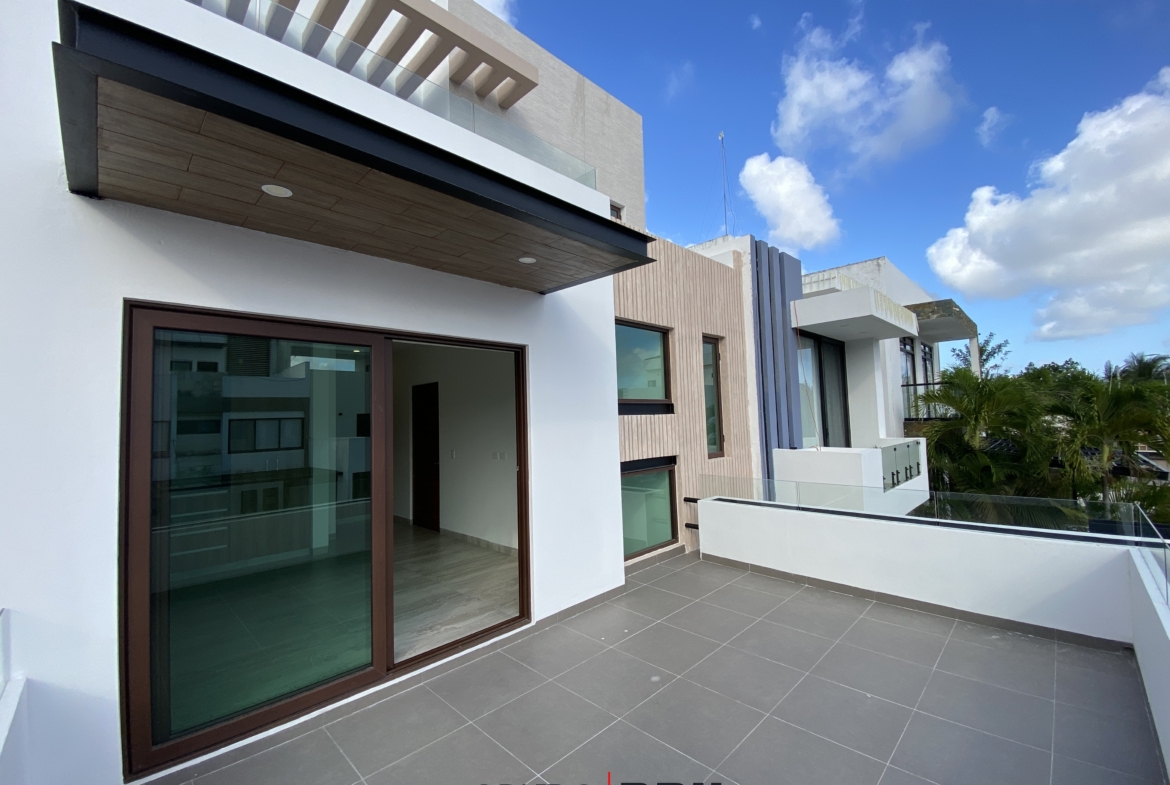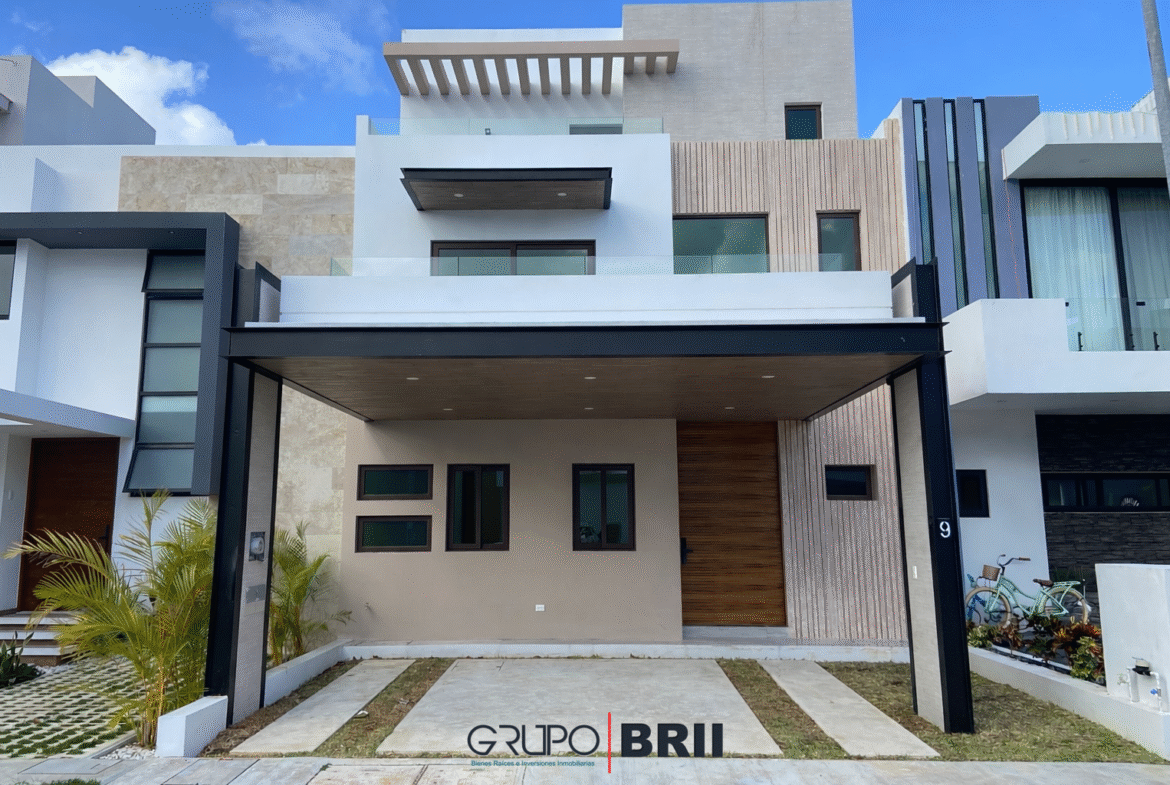 Esta casa nueva de 3 niveles ofrece 297 m² de construcción sobre un terreno de 160 m², además de 72 m² adicionales distribuidos en cuatro terrazas privadas, creando ambientes únicos para disfrutar del clima caribeño, la privacidad y el confort.